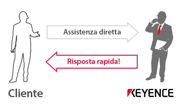 KEYENCE supporta i clienti in loco con vaste conoscenze di produzione e automazione. Il nostro personale tecnico di vendita è a disposizione per fornire assistenza completa ad ogni stadio del lavoro: dalla fase di ricerca e progettazione, all'attivazione delle linee con istruzioni in loco, passando per la selezione dei modelli e l'acquisto dei prodotti.