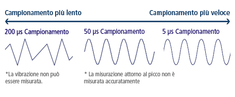 Quando si misura una parte vibrante a 2kHz, è possibile raccogliere più dati a velocità di campionamento più elevate. Ciò si traduce in una curva più accurata.