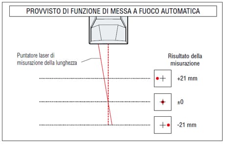*La telecamera incorporata è utilizzata per monitorare il puntatore laser per la misurazione della distanza. La messa a fuoco automatica si ottiene calcolando la distanza dalla posizione del puntatore.
