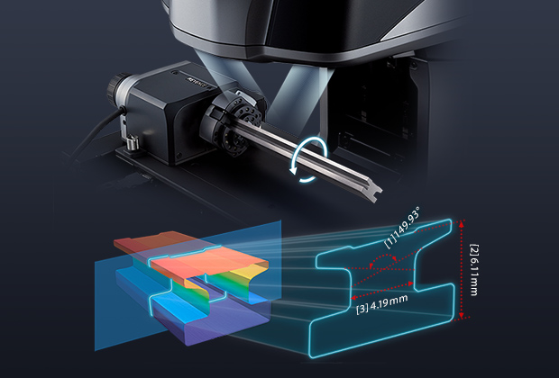 Scansione rotazionale motorizzata per eseguire una gamma più ampia di misurazioni. Sistema di misurazione 3D facile da usare e senza contatto.