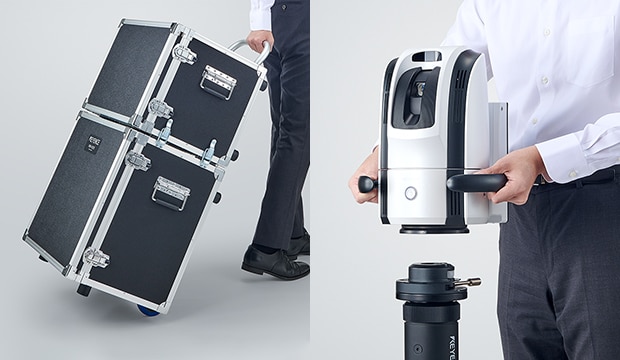 La CMM ad area ampia Serie WM-6000 può facilmente misurare le dimensioni e le forme dei target. Le dimensioni possono essere misurate con la sonda a contatto e le forme con la sonda di scansione laser. Le sonde wireless eliminano le limitazioni dovute a cavi o bracci, permettendo una facile misurazione su un ampio campo. Senza la necessità di opacizzare il pezzo o di apporre markers, è possibile eseguire una scansione rapida e ad alta precisione.