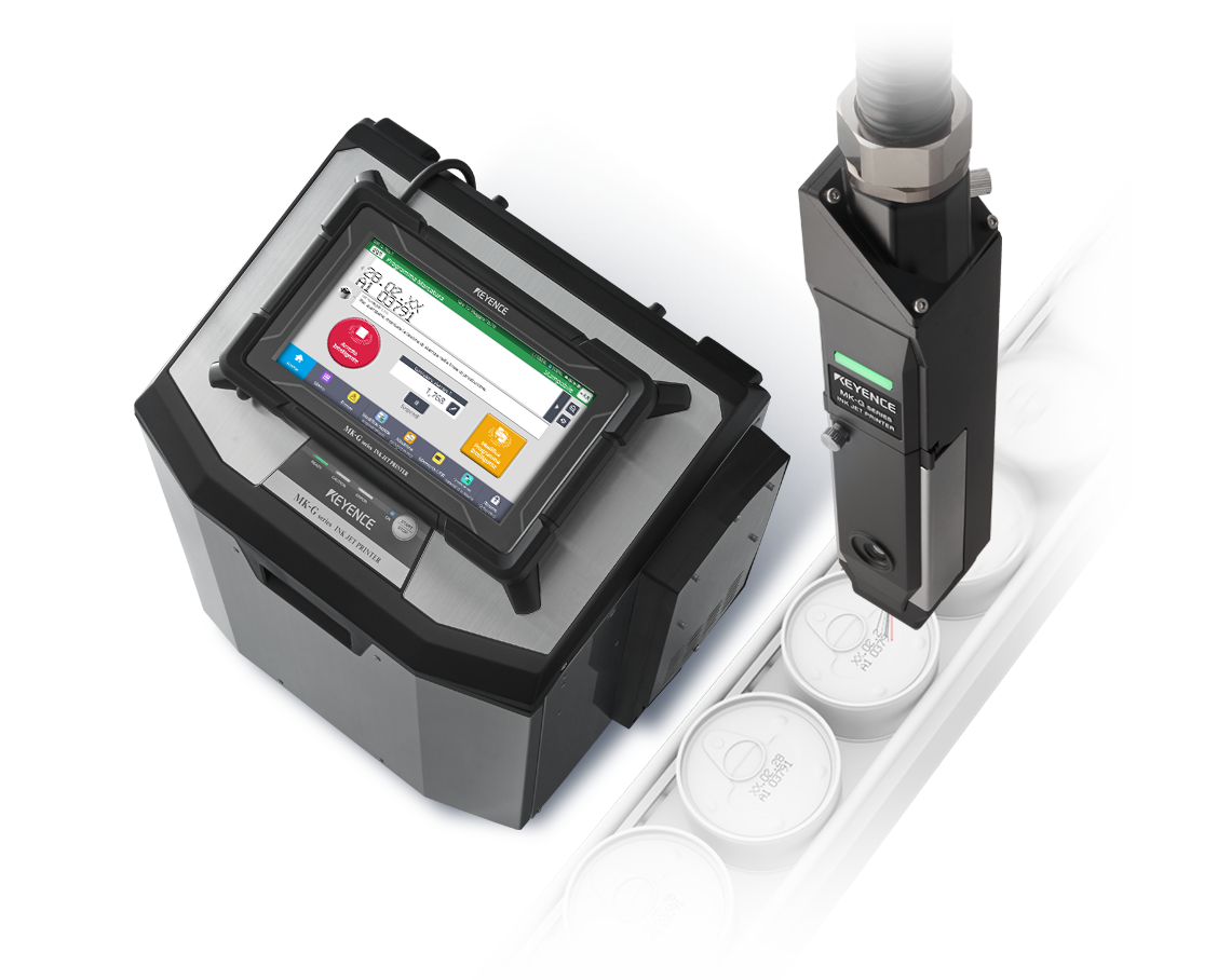 La serie MK-G di KEYENCE è una stampante a getto d'inchiostro continuo (CIJ) ideale per la stampa di date di scadenza, lotti di produzione, codici a barre/codici 2D su prodotti in stabilimenti e magazzini. La stampa a getto d'inchiostro senza contatto evita sbavature e danni al prodotto. Questa tecnologia consente di stampare ad alta velocità da qualsiasi direzione o orientamento e la testina compatta può essere montata facilmente su confezionatrici o riempitrici, rendendo l'installazione semplice. I valori progressivi e le date possono essere aggiornati automaticamente per evitare la stampa di dati errati.