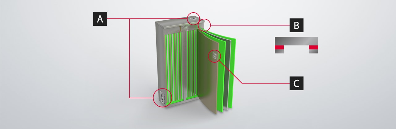 La marcatura di codici 2D si sta diffondendo. In passato, venivano marcati solo gli involucri delle batterie. Ora è necessario marcare anche i singoli elettrodi, oltre all’involucro.