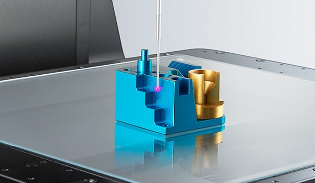 Il laser multicolore integrato rileva istantaneamente l'altezza della posizione specificata sul pezzo, consentendo una misurazione accurata indipendentemente dal materiale.