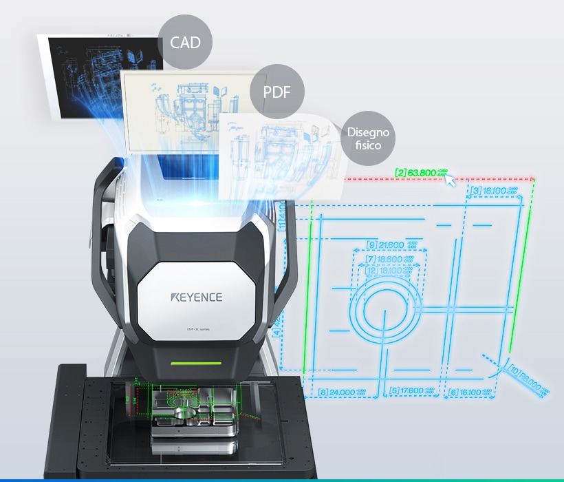 Sistema di misurazione dimensionale tramite immagini Serie IM-X1000 Misurazione e programmazione facile e accurata Automatizza l'ispezione e la programmazione Il primo al mondo Importazione automatica del disegno