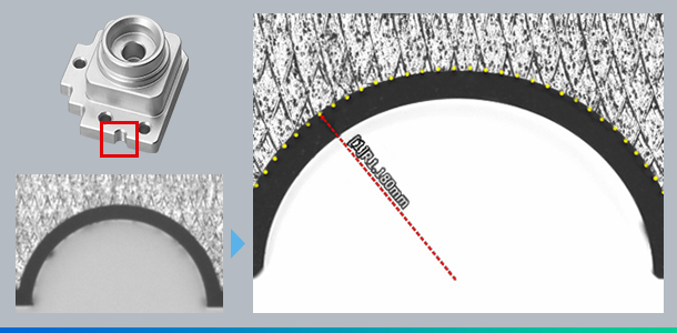 La sonda a contatto con pressione di misurazione bassa si muove liberamente in verticale, in orizzontale e in obliquo, consentendo di misurare i punti desiderati con un tocco delicato. Anche i pezzi con forme 3D possono essere misurati con precisione.