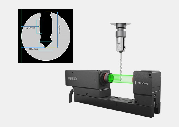 È possibile misurare l'angolo in punti specifici utilizzando l'immagine ottenuta con il metodo di proiezione ottica 2D. Oltre all'angolo, è possibile misurare contemporaneamente anche il diametro esterno, il gradino e altri parametri in più punti.