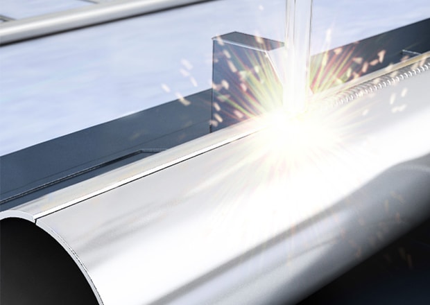 La forma della sezione trasversale nei punti colpiti dal laser viene rilevata e l'angolo viene misurato in relazione alla forma ottenuta.