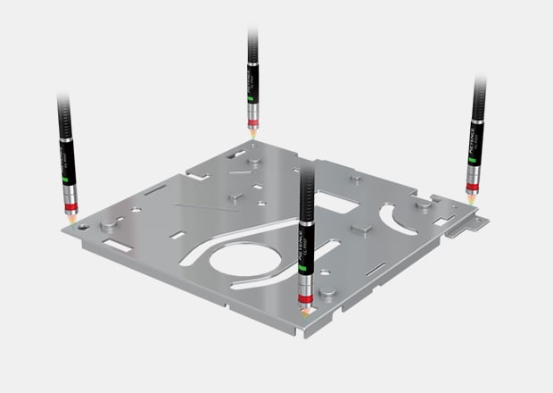 Per una misurazione più precisa della deformazione, le CMM misurano anche diversi punti sulla superficie del pezzo per determinarne la deformazione, mentre i sensori di spostamento laser si basano sul calcolo delle variazioni di altezza/distanza tra la testa del sensore e la superficie del pezzo.