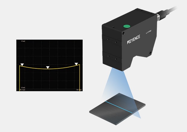 La deformazione e la planarità vengono misurate calcolando la differenza di altezza ottenuta da più testine sensori in diversi punti del pezzo. Non si verificano errori di misurazione causati dalle vibrazioni generate dallo spostamento di una singola testina sensore nei diversi punti di misurazione. Poiché le testine sensori non vengono spostate, i tempi dei cicli di ispezione sono rapidi. Non è necessario alcun meccanismo per lo spostamento della testina sensore.