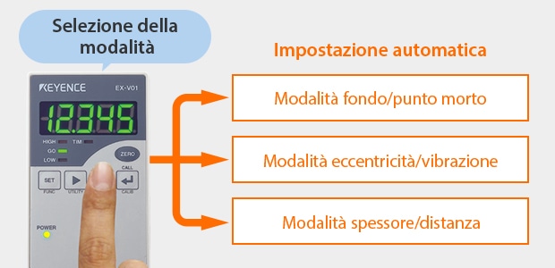 Per impostare automaticamente il programma più adatto ad un'applicazione è sufficiente selezionare semplicemente una modalità di misurazione, senza bisogno di configurazioni complesse dell'input di disinserimento, dell'impostazione di un timer o dell'uso di dispositivi esterni per l'esecuzione di operazioni aritmetiche.