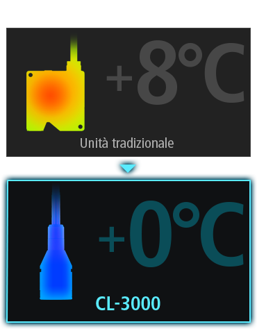 La testina sensore non ha nessun componente elettronico, solo lenti. Ciò consente di eliminare gli errori di misurazione dovuti alla generazione di calore, al rumore elettrico o alle deviazioni dell'asse ottico.