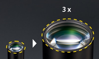 Oltre all'esclusivo design dell'ottica, una lente ricevente ad elevata apertura che copre un'area pari al triplo di quella coperta dalle lenti di tipo tradizionale consente di aumentare la quantità di luce ricevuta.