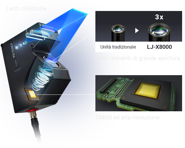 L’acquisizione della forma reale di un target è un fattore cruciale nell'esecuzione di ispezioni affidabili. Con 3200 punti per profilo, la Serie LJ-X8000 acquisisce la forma del target in alta risoluzione, consentendo misurazioni in linea estremamente accurate.
