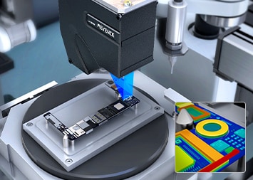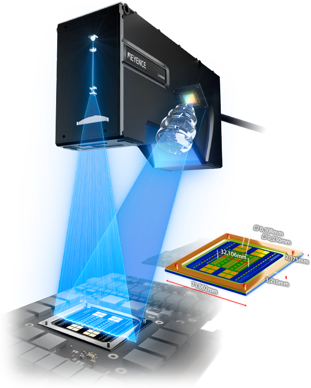 Profilometro laser 2D/3D Serie LJ-X8000 Campo di misura doppio rispetto ai modelli convenzionali Ispezione 3D in linea tramite dati di altezza
