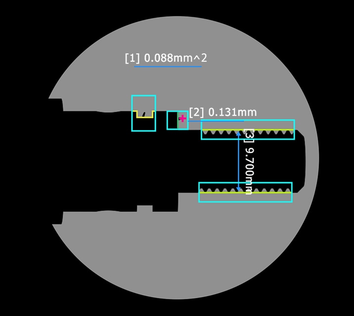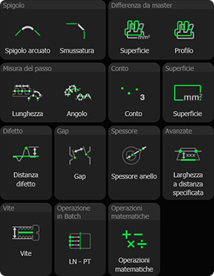 Approfittate di oltre 100 strumenti di misurazione con possibilità di combinarli tra loro. Utilizzate un’ampia gamma di strumenti per ispezioni in linea oltre alle semplici misurazioni dimensionali, compresi GD&T, confronti con master per l’identificazione di prodotti e misurazioni delle dimensioni dei difetti per le ispezioni visive.