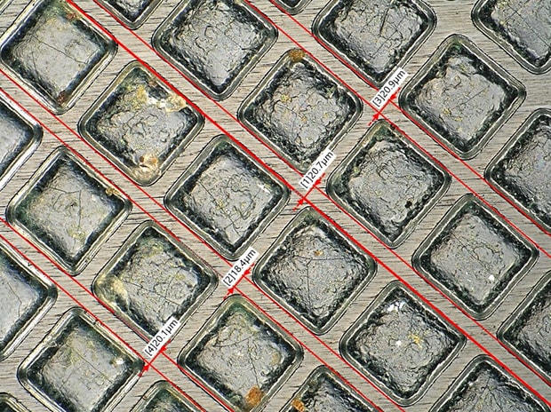 Utilizzando un design specializzato che comprende un obiettivo HR ad alta risoluzione, un sensore di immagine CMOS 4K e una tecnologia di illuminazione avanzata, KEYENCE ha sviluppato un metodo di microscopia completamente nuovo. Le minime irregolarità sulla superficie possono essere rilevate analizzando il contrasto in un'immagine acquisita con illuminazione multidirezionale.