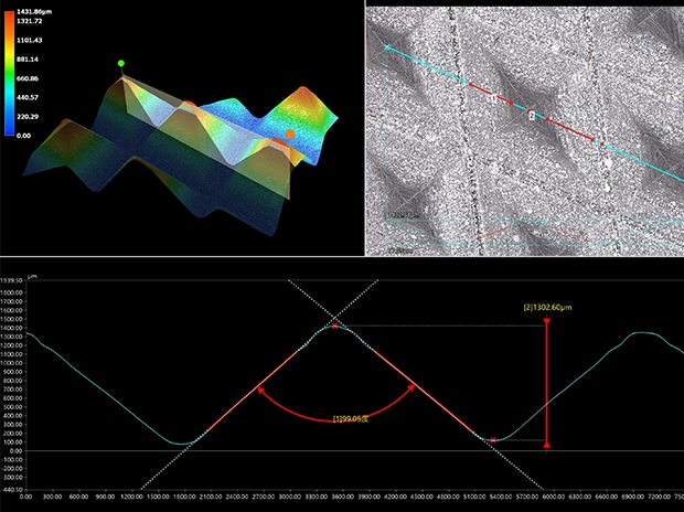 I microscopi digitali possono produrre visualizzazioni 3D a fuoco completo premendo un pulsante. I dati tridimensionali vengono ottenuti mentre il tavolino è in movimento e le immagini vengono acquisite in modo continuo, creando una visione d'insieme del target. Gli utenti sono anche in grado di misurare la rugosità superficiale semplicemente tracciando una linea di profilo in qualsiasi punto.