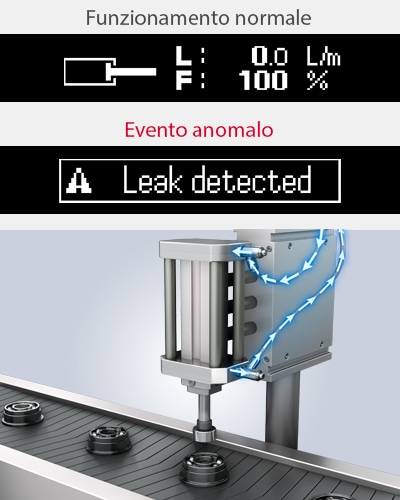 Monitoraggio di flusso + pressione Diagnosi semplificata delle condizioni delle apparecchiature pneumatiche