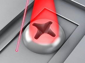 I sensori laser basati sulle immagini della Serie IX possono misurare l'altezza in qualsiasi punto dell'area inquadrata. Il riconoscimento dell'immagine della telecamera permette al laser di rilevare l'altezza del punto indicato anche quando i pezzi non sono perfettamente allineati sulla linea di produzione. L'altezza del punto in cui il laser colpisce il target varia se il target è inclinato o se il target stesso è diverso, ma la Serie IX può identificare differenze di altezza rispetto ad un riferimento. Ad esempio, in una linea di assemblaggio componenti, una singola unità della Serie IX può non solo controllare la presenza, ma anche eseguire controlli di posaggio e altre ispezioni basate sull'altezza. Grazie alla sua capacità di rilevare le differenze di altezza, la Serie IX è anche esente da falsi rilevamenti ed errori in presenza di riflessi da superfici lucide di parti metalliche o quando il punto di rilevamento ha lo stesso colore dello sfondo, offrendo una stabile differenziazione automatica in linea.
