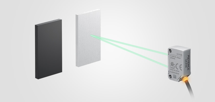La Serie LR-X rileva target in base alla posizione, non all'intensità luminosa. Questo consente un rilevamento stabile di target, a prescindere dal colore, dalla finitura della superficie o dalla forma. Questo consente di utilizzare la Serie LR-X in un'ampia gamma di applicazioni, comprese quelle con piccoli cambi di posizione.