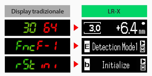 Non dovrete più tentare di interpretare un menu o un'impostazione! La Serie LR-X è dotata di un intuitivo display OLED in cui tutto viene visualizzato in modo estremamente chiaro. Dai punti di riferimento alle impostazioni dei menu, comprendere un sensore non è mai stato così facile.