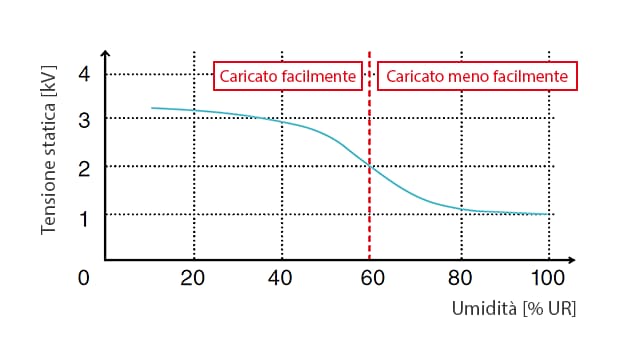 Relazione tra umidità e carica elettrostatica (esempio tipico)