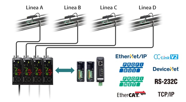 Le specifiche standard includono un sistema di valutazione a 3 uscite indipendente e un’uscita di tensione/corrente analogica per raccogliere e trasmettere il volume di elettricità statica del target, nonché i dati di temperatura e umidità dell'area circostante. Grazie ad un’unità di comunicazione, è possibile trasmettere contemporaneamente i dati da un massimo di 8 unità principali e unità di espansione collegate. La capacità di leggere i dati e riscrivere le impostazioni da PC e da PLC contribuisce a ridurre in modo significativo le ore di lavoro richieste per la configurazione e la messa in funzione del sensore.