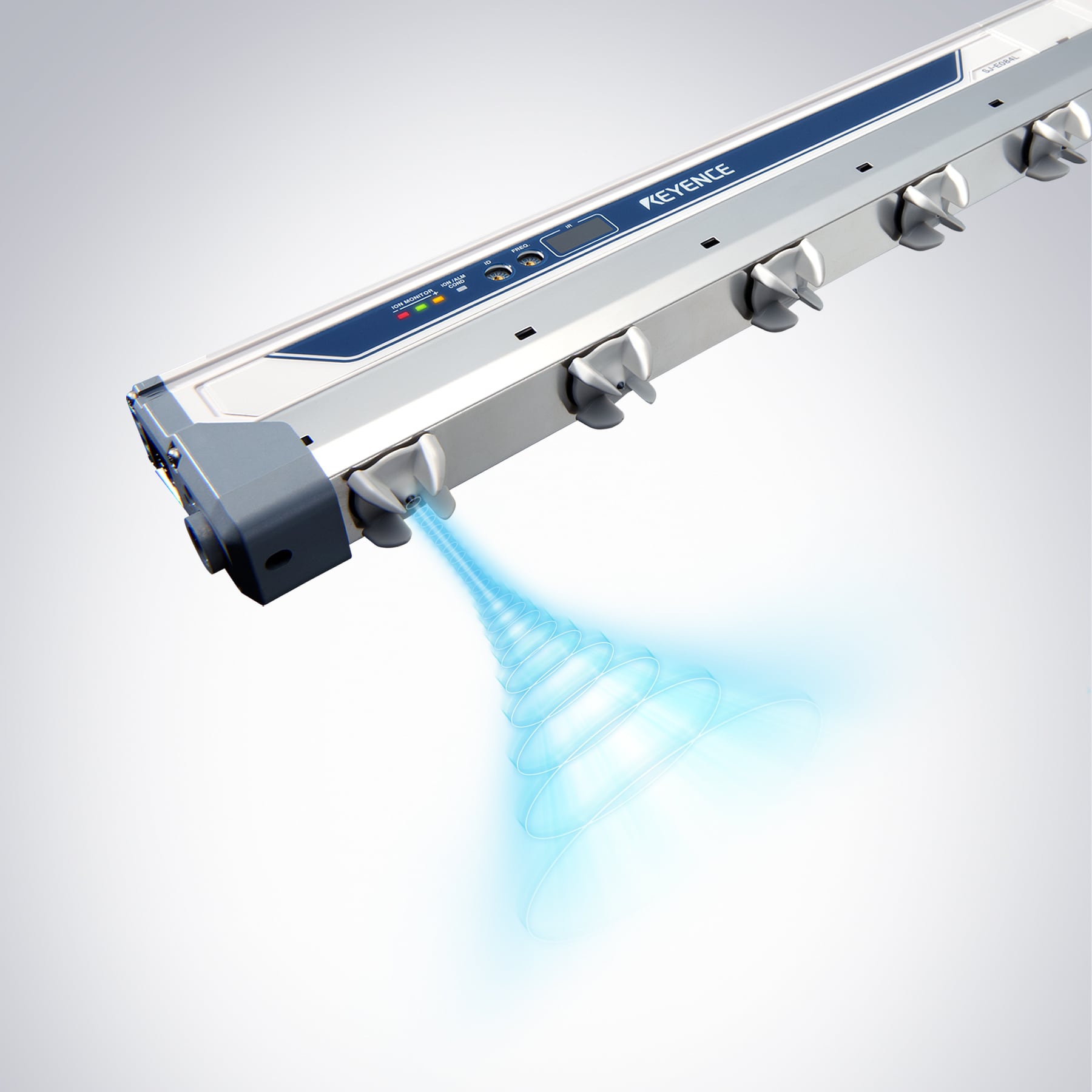Utilizzando la prima struttura supersonica mai sviluppata nella storia dei deionizzatori, KEYENCE ha aumentato la velocità degli ioni oltre la velocità del suono, il che rende possibile un’eliminazione dell’elettricità statica più veloce al mondo con un volume d’aria estremamente ridotto.