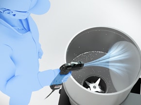 La struttura dell’ugello Laval del dispositivo, utilizzata anche nella tecnologia dei motori a getto, spinge fuori l’aria a velocità supersoniche. L’aggiunta di ioni all’aria a velocità ultra elevate aiuta non solo a rimuovere le particelle estranee ma anche a evitare che si riattacchino.