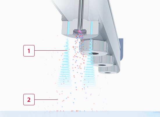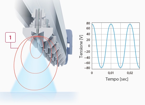 Anche in caso di usura degli ugelli, l'eliminazione dell'elettricità statica rimane invariata grazie alla tecnologia Hi-Power I.C.C: più questi si consumano, maggiore sarà la tensione applicata sugli elettrodi per mantenere le stesse performance.