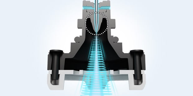 La struttura supersonica interna consente un’eliminazione dell’elettricità statica più rapida rispetto ai modelli tradizionali.