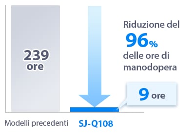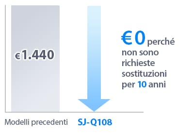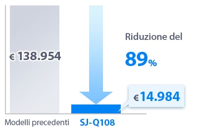 * Bolletta dell’elettricità annuale calcolata a 0,21 €/kWh. Confronto di simulazioni con una fornitura di 0,5 MPa CDA a SJ-Q108 per 10 anni e 0,5 MPa CDA a un SJ-H108 tradizionale per 10 anni.