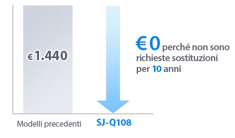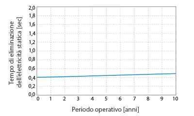 Anche in caso di usura degli ugelli, l'eliminazione dell'elettricità statica rimane invariata grazie alla tecnologia Hi-Power I.C.C: più questi si consumano, maggiore sarà la tensione applicata sugli elettrodi per mantenere le stesse performance.