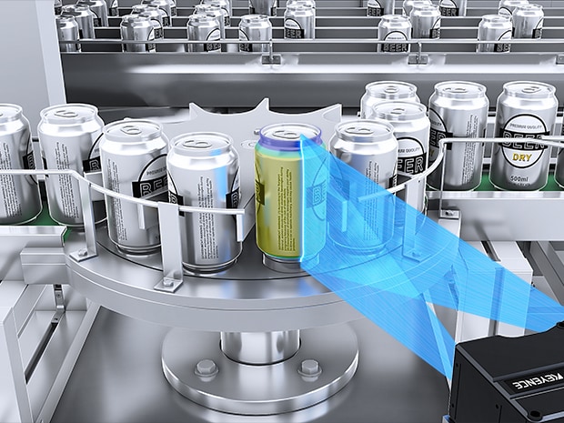 L’ispezione di lattine di bevande per escludere ammaccature e graffi può essere effettuata per un migliaio di colori e lucidità differenti. L’acquisizione di dati 3D garantisce un’ispezione stabile anche di superfici in metallo curvo e lucido, per cui è difficile acquisire immagini con le telecamere tradizionali.