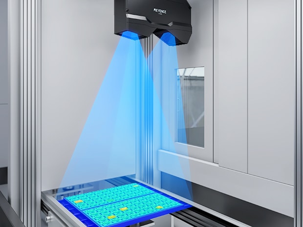 Usando i dati 3D, è possibile rilevare le sovrapposizioni e il sollevamento dei chip che sono difficili da identificare con le telecamere. L’acquisizione simultanea di immagini in scala di grigi consente anche l'identificazione fronte-retro basata sulle differenze di aspetto del chip.