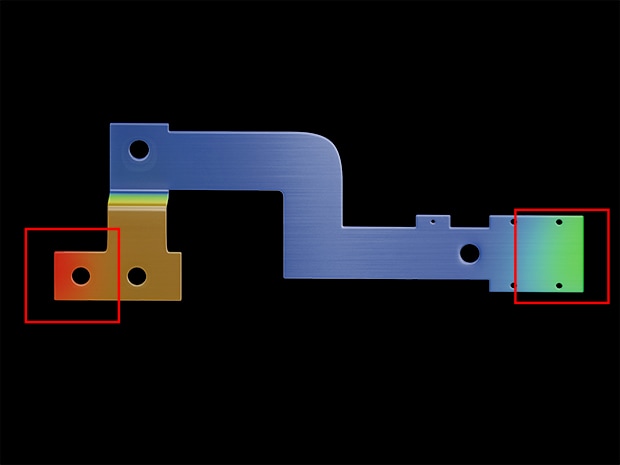 I metodi tradizionali avevano bisogno di più sensori per ispezionare la planarità delle busbar, ma la Serie LJ-S8000 consente una scansione e ispezione dell’intera superficie in un unico passaggio. L’integrazione con un robot conduce a un significativo aumento della produttività.