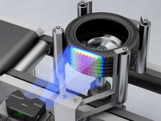 Dato che la Serie LJ-S8000 è equipaggiata con un meccanismo di auto-scansione integrato, riesce a catturare i pattern dei battistrada senza dover ruotare il pneumatico. Dato che la misurazione può essere fatta semplicemente tenendo il pezzo da ispezionare di fronte alla testina, il suo uso in prossimità della linea di produzione è in aumento.