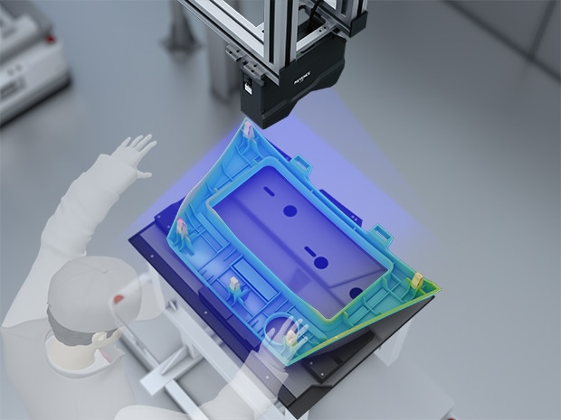 A differenza dei sistemi tradizionali che utilizzano la variazione del colore e possono quindi essere instabili in presenza di colori simili a quello dello sfondo, la Serie LJ-S8000 consente l’ispezione della presenza di difetti di montaggio usando dati 3D.
