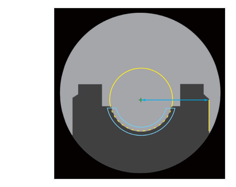 Per distinguere la parte interna e quella esterna di un cuscinetto si misura la posizione della scanalatura della pista. Questa misurazione veniva solitamente effettuata visivamente e con l’elaborazione delle immagini, ma la differenza dimensionale è talmente piccola da indurre, talvolta, dei giudizi errati. Dato che la Serie TM-X5000 viene calibrata in fabbrica ed è certificata in conformità con gli standard nazionali, è possibile misurare accuratamente le superfici interne ed esterne con una precisione inferiore al micron. È dotata inoltre di un sistema a due obiettivi telecentrici che consentono misurazioni accurate malgrado gli spostamenti nel posizionamento delle parti.