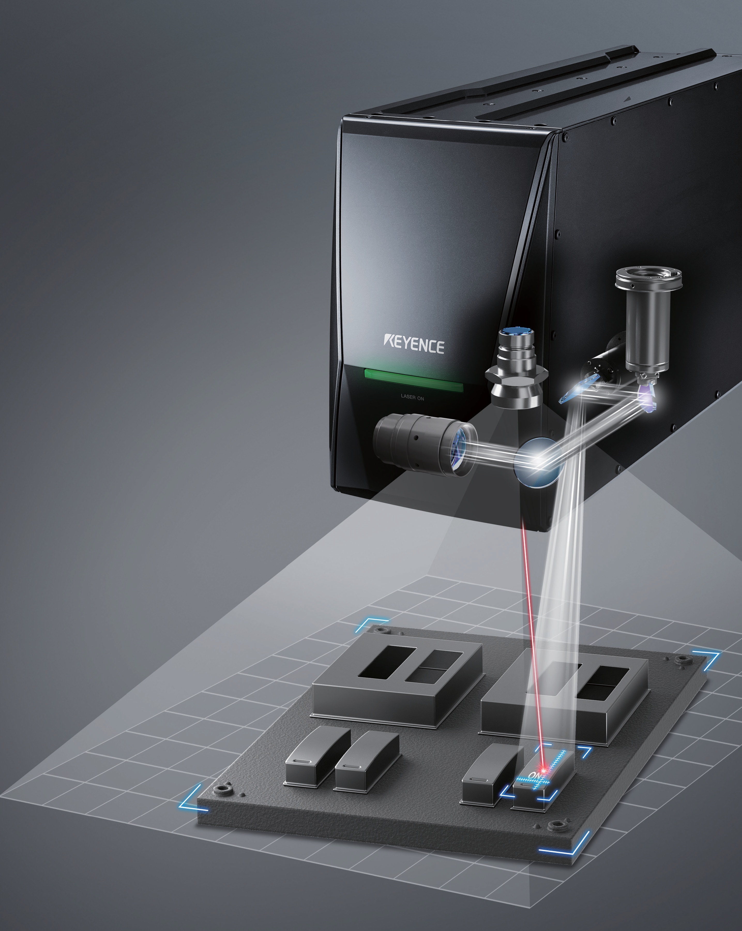 La telecamera incorporata nella testina trova la posizione del prodotto, permettendo di correggere la posizione della marcatura senza dispositivi esterni. Questo previene la marcatura difettosa dovuta a disallineamenti.