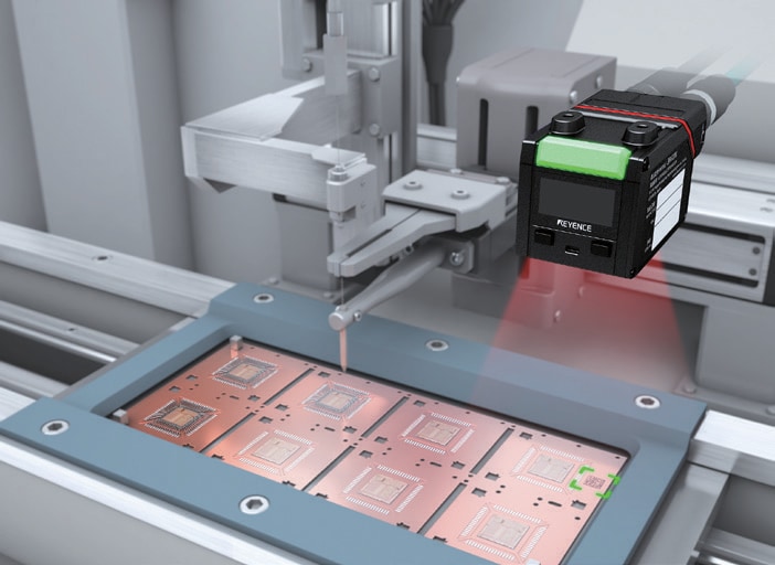 In caso di lead frame trattati, possono verificarsi irregolarità di colore. Una colorazione disomogenea può causare un aspetto sfumato, rendendo difficile la lettura dei codici.L’eliminazione degli effetti sfumati rende possibile una lettura precisa dei dati.
