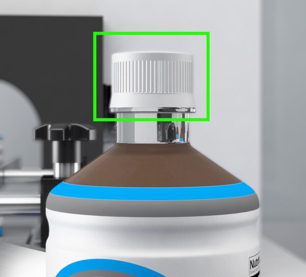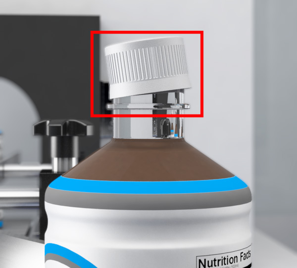 L’ispezione di tappi inclinati viene effettuata lateralmente. Il monitoraggio della posizione dei tappi rende possibile il rilevamento di tappi inclinati anche in presenza di vibrazioni.