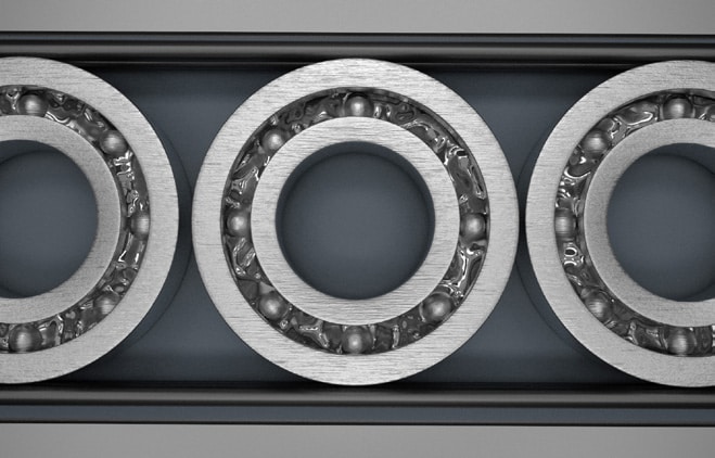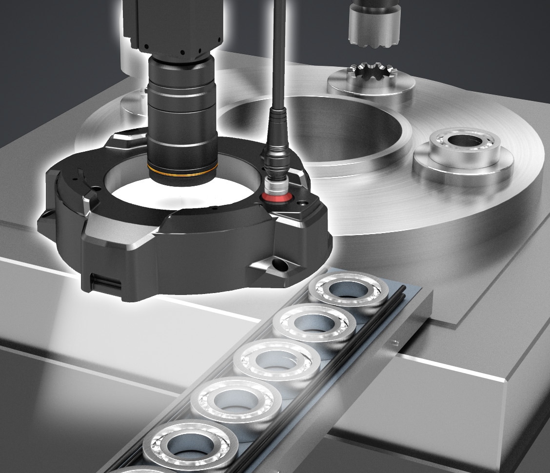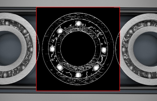 Questo è un esempio di ispezione di sfere mancanti nei cuscinetti a sfera. La selezione del colore di illuminazione può contribuire a risolvere problemi come quelli che si verificano quando il grasso aderisce al target, rendendo difficile l'ispezione. In questo esempio, la modalità LumiTrax™ consente di rilevare le sfere mancanti nei cuscinetti riempiti con grasso trasparente.