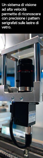 Nella prima fase, il vetro viene caricato e processato in una stazione manuale. Esso entra quindi nell’area di lavorazione automatica, dove viene attestato in una posizione precisa. A questo punto, uno shuttle con azionamento controllato preleva il vetro e lo muove nella prima stazione di processo, nella quale il vetro viene dapprima ispezionato con due sistemi di visione installati sui robot. Successivamente vengono spazzolate le aree di saldatura e a seguire i due robot si predispongono per effettuare il controllo del circuito serigrafico del lunotto mediante termovisione. Un sistema di visione ad alta velocità e alte prestazioni permette di riconoscere con precisione i pattern serigrafati sulle lastre di vetro, in preparazione delle operazioni successive. Una volta eseguito il controllo termografico si sfruttano le potenzialità delle telecamere per verificare l’efficienza della spazzolatura. “Completati questi controlli, il vetro viene trasportato dallo shuttle nella stazione successiva dell’impianto, in cui viene eseguita la saldatura dei terminali con una speciale tecnologia sviluppata dalla nostra azienda”, ha spiegato il signor D’Ottavio.