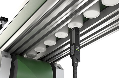 Dopo la produzione, i prodotti vengono spostati su un nastro trasportatore dedicato per la marcatura. Una marcatura senza contatto chiara e affidabile consente di rispondere immediatamente a una domanda imprevista. Dal momento che non dovete integrare il marcatore con il trasportatore e la testina di marcatura può essere orientata in qualsiasi direzione, è possibile marcare le date in modo affidabile sia sul lato superiore che sui lati del prodotto. Per marcare sul fondo dei prodotti da sotto, si utilizza un trasportatore a pinza che sposta i prodotti tenendoli dai lati.