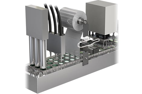 Le CIJ marcano le date sulle pellicole utilizzate come coperchio per sigillare i bicchieri. Mentre i bicchieri si spostano in file, il contenuto viene riempito e poi le pellicole di copertura marcate vengono termosaldate sui bicchieri. È possibile montare la testina di marcatura sui bracci trasversali per spostare e marcare le date in modo efficiente.