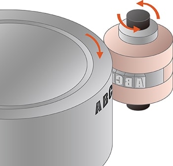 Questo metodo può essere usato per marcare tramite incisione superfici curve con più cifre allineando gli stampi in orizzontale in un anello.