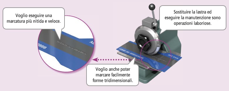 Gli incisori sono dispositivi che eseguono la marcatura applicando pressione sul target con una lastra.