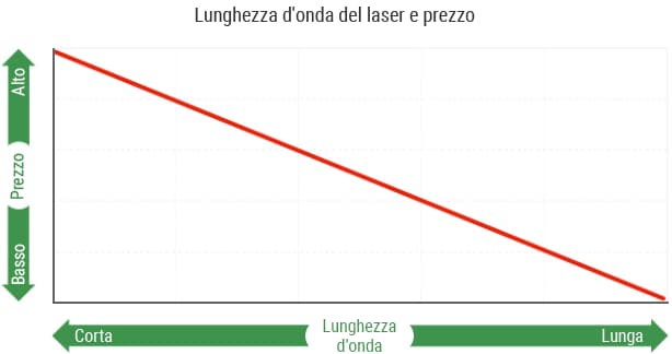 In linea di massima, il prezzo di un marcatore laser è inversamente proporzionale alla lunghezza d'onda della sua luce laser.
